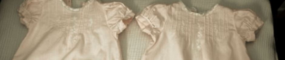 French hand-sewn dresses I made for my twin granddaughters born December 20, 2019.